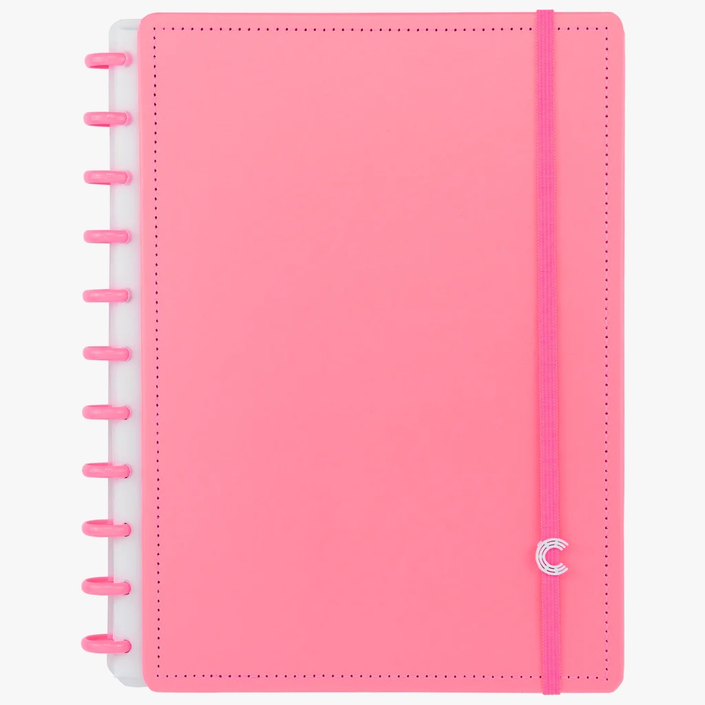 CADERNO INTELIGENTE MEDIO ALL PINK Inteligine: Capa e contracapa rígidas, 01 folha de instrução de uso e manuseio, com refis e acessórios da marca disponíveis no verso, 01 folha de identificação com calendário no verso, 50 folhas offset 120g e 01 suporte com elástico para 01 caneta ou 01 lápis.